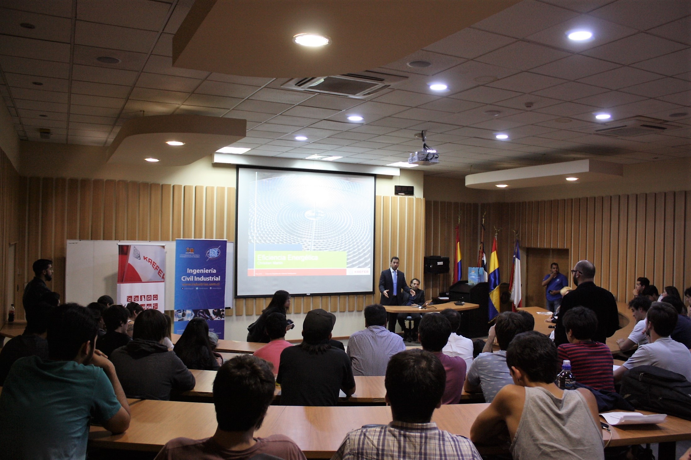 En representación de la USM, participaron: Patricio Núñez, Director de Vinculación con el Medio; Dr. Cristóbal Fernández Robin, Director del Departamento de Industrias; Dra. María Pilar Gárate Chateau, Académica de la Unidad Académica, quien además fue la encargada de introducir la charla magistral y explicar los principales puntos del acuerdo; y Pablo Viveros Gunckel, Académico de Departamento de Industrias y gestor del convenio de colaboración.