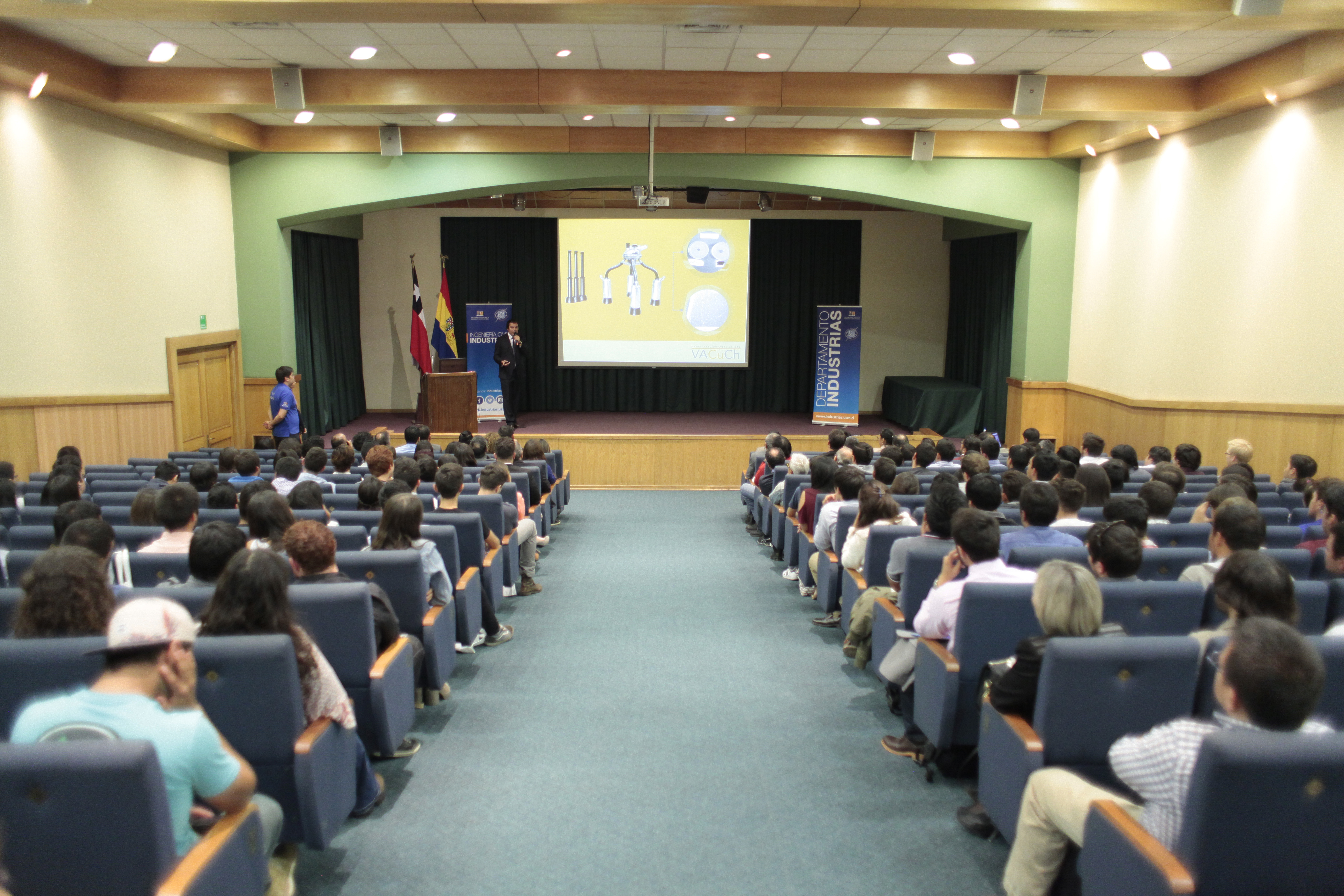 Para dar un cierre a la actividad, Nicolás Morelli y Juan Ignacio Ojeda, alumnos de Ingeniería Civil Industrial y fundadores de VACuCh, empresa dedicada a la innovación y desarrollo de dispositivos antibacterianos en base a caucho y cobre para la industria lechera mundial, entregaron su testimonio en base a la importancia que tienen las asignaturas del plan de estudios en el desarrollo de un emprendimiento (ya sea en la detección y evaluación de soluciones a una problemática, generación de flujos de caja y reportes para el levantamiento de capital, proyección de demanda, planes de producción, gestión de calidad y venta del producto, entre otros), la relevancia del pensamiento sistémico y la capacidad de adaptación a los cambios que entrega la carrera y la universidad como sello característico, así como también incentivando a los alumnos a tomar la decisión de emprender de manera temprana durante la etapa universitaria.