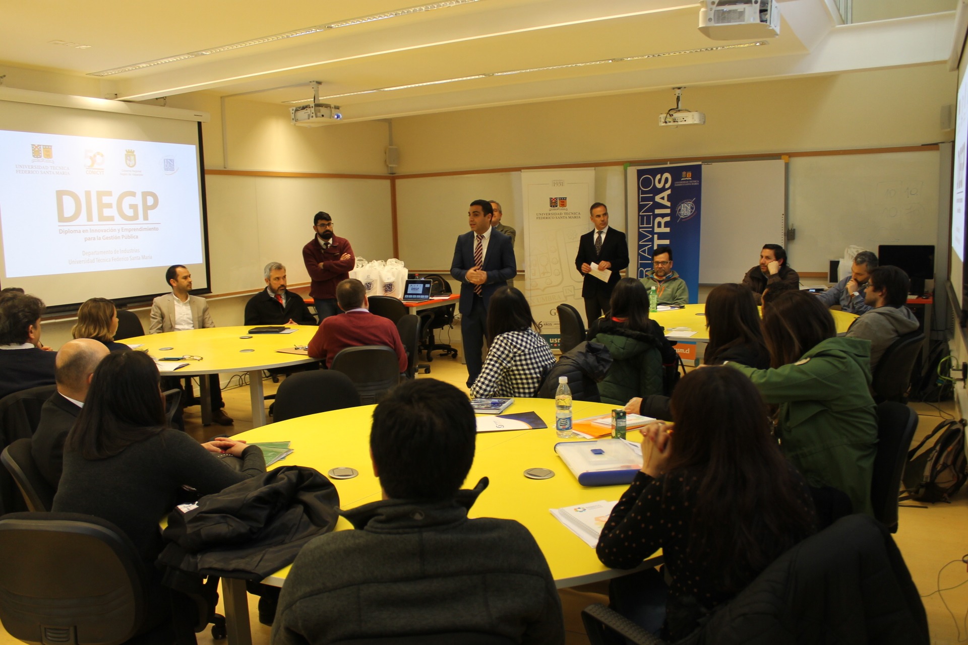 Todo un éxito fue la primera jornada del Diploma en Innovación y Emprendimiento para la Gestión Pública – DIEGP – impartido por el Departamento de Industrias de la Universidad Técnica Federico Santa María en la Región de Valparaíso. La iniciativa es financiada por la Comisión Nacional de Investigación Científica y Tecnológica, CONICYT, y cuenta con el apoyo del Gobierno Regional de Valparaíso, además de la Pontificia Universidad Católica de Chile y a IF Valparaíso como actores asociados.