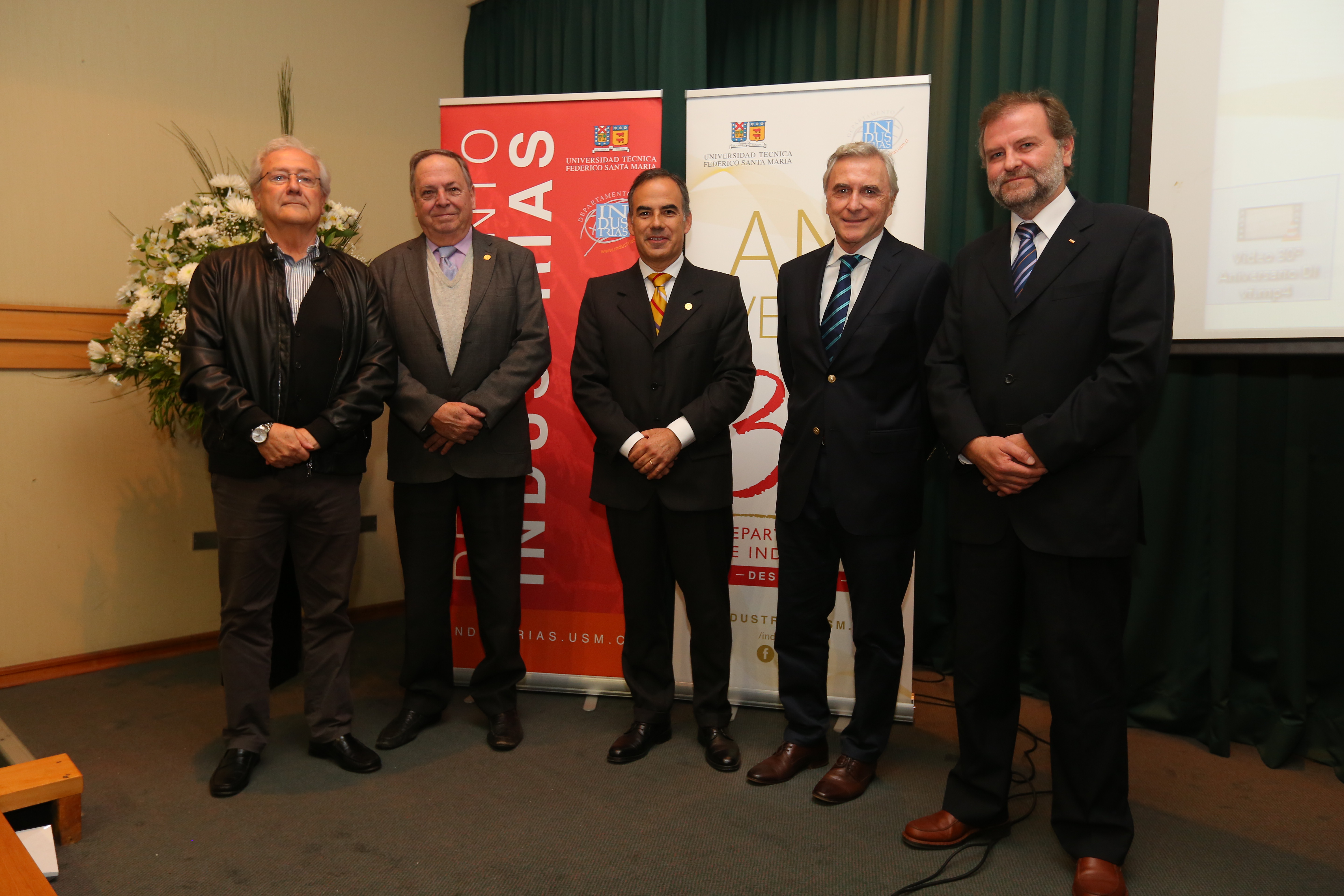 Durante la actividad, se entregó un reconocimiento a Adolfo Arata Andreani, Giovanni Pesce Santana y Rodolfo Martínez Ocariz, quienes fueron los primeros profesores jornada completa de la carrera de Ingeniería Civil Industrial y fundadores del Departamento de Industrias. Así también, se exhibió un video conmemorativo que sintetizó el trabajo que la Unidad Académica realiza en pos del desarrollo del país, a través de la formación de sus profesionales, reconocidos por su capacidad analítica a la hora de enfrentar exitosamente las complejidades de la industria, agregando valor en el amplio quehacer dentro de las posibilidades como profesionales integrales.