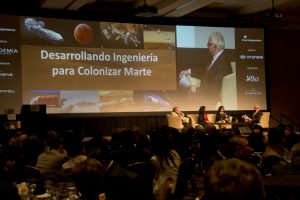 En el conversatorio participó el director de la unidad de arquitectura extrema del Departamento de Arquitectura de la USM, Pedro Serrano, junto a Priscilla Nowajewski, científica planetaria y presidenta de The Mars Society Chile y Laura Flores, también científica planetaria, especialista en geología de los planetas, quienes debatieron respecto de la posibilidad de viajar a Marte.