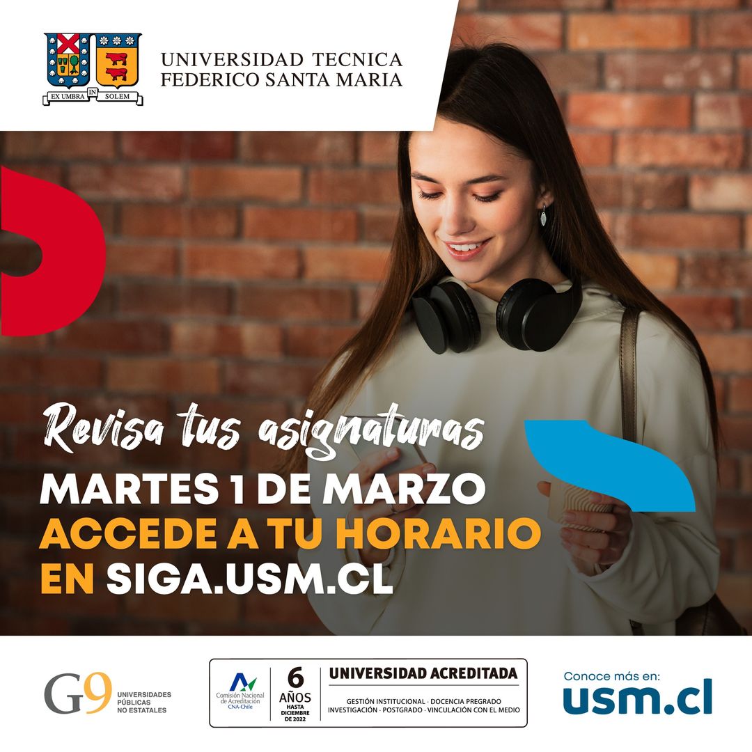 Accede a siga.usm.cl el 1 de marzo y revisa los horarios de todas tus asignaturas para el primer semestre académico 2022.