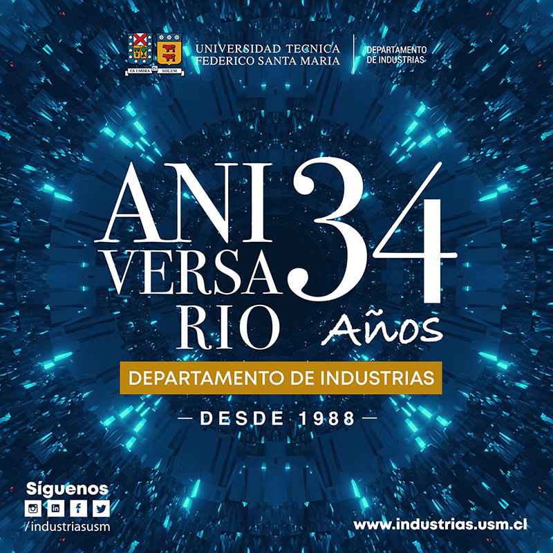 Hoy, 1 de junio, conmemoramos el 34º aniversario del Departamento de Industrias de la Universidad Técnica Federico Santa María, unidad académica líder en innovación, emprendimiento y gestión.