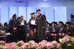 Tras estos premios, se procedió a entregar su título profesional a los más de 500 jóvenes, los que luego, siguiendo las palabras del secretario general de la USM , Jerome Mac Auliffe, prestaron su juramento profesional.