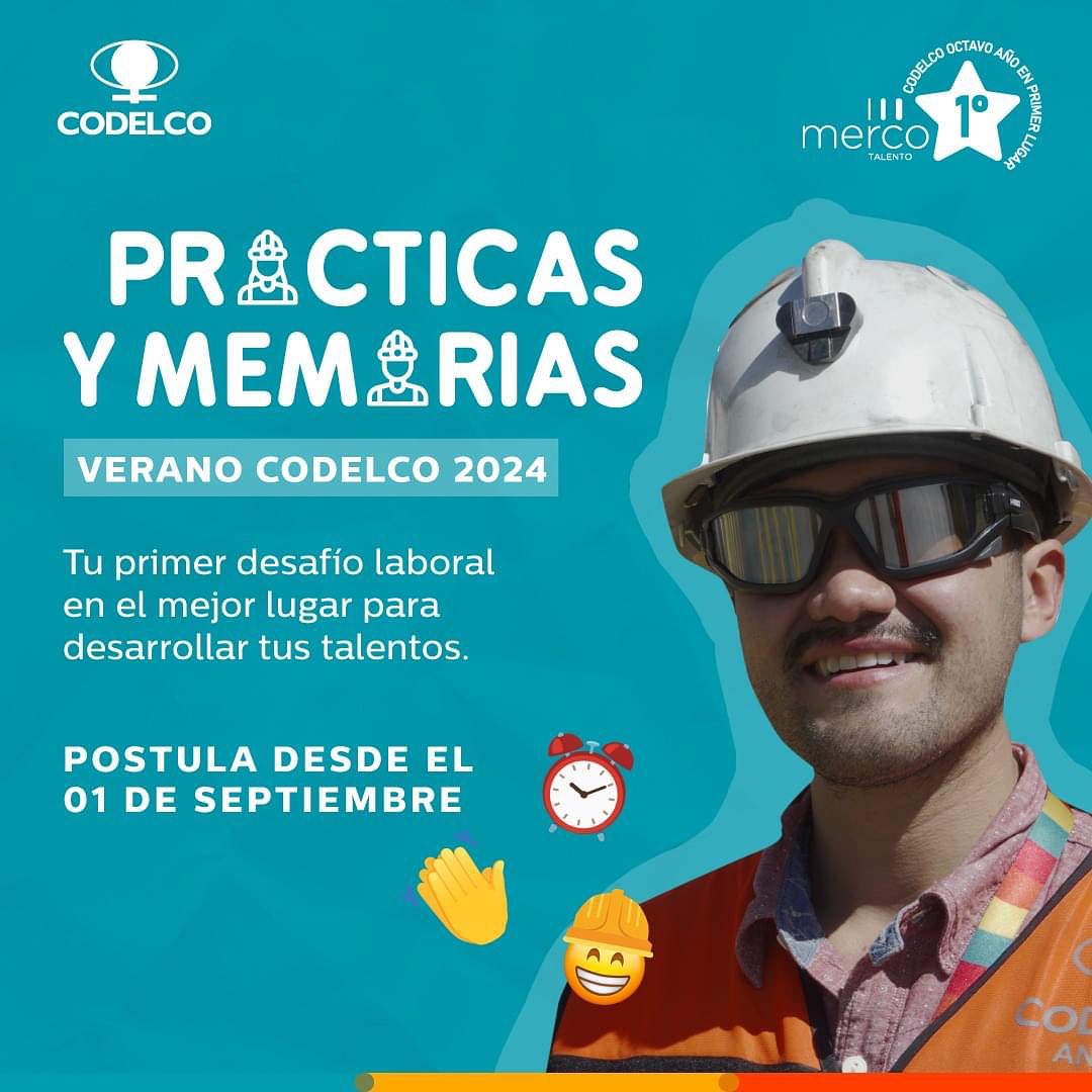 Más información y postulaciones a Memorias en: https://empleos.codelco.cl/job-invite/82840/