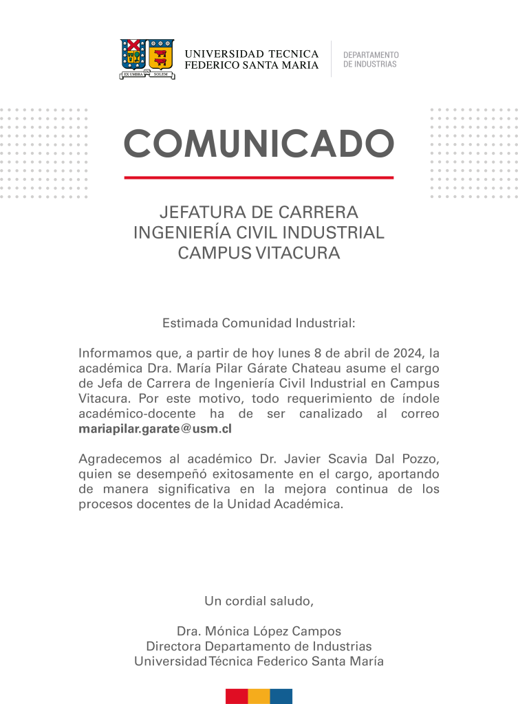 Comunicado: Jefatura de Carrera Ingeniería Civil Industrial Campus Vitacura