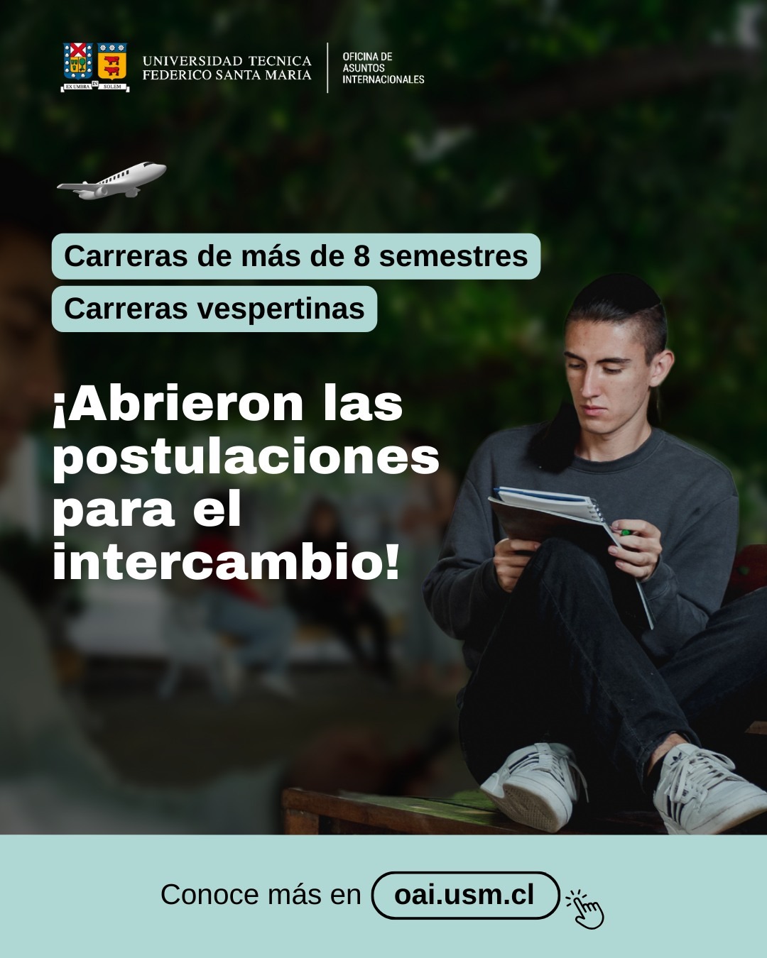 ¿Perteneces a una carrera de más de 8 semestres o vespertinos? Postula hasta las 23:59 horas del 15 de mayo 2024 en https://intercambio.usm.cl/postulacionIntercambio/