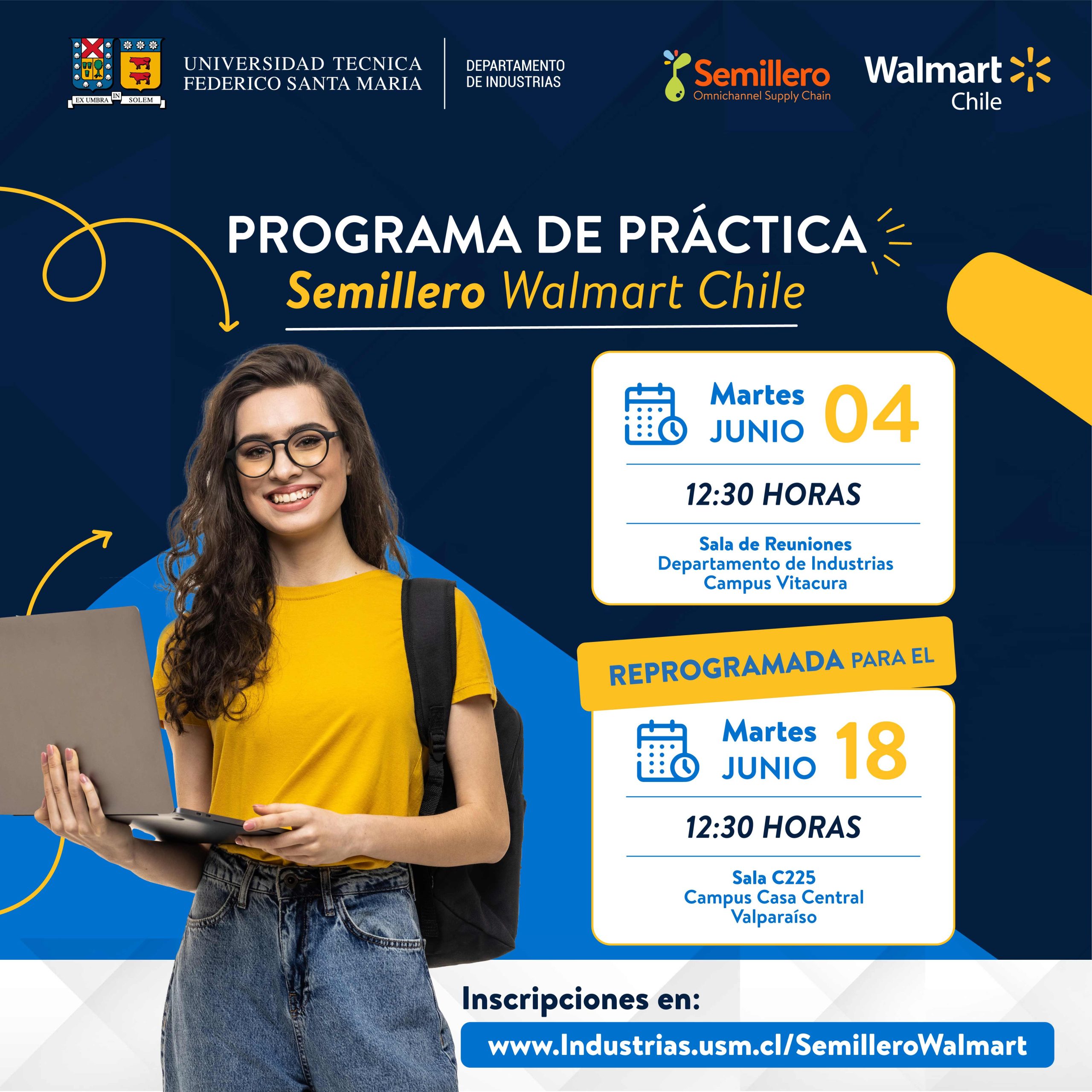 Walmart Chile invita a estudiantes de Ingeniería Civil Industrial de la Universidad Técnica Federico Santa María a participar de la Charla Informativa del Programa de Prácticas Semillero Omnichannel Supply Chain, donde potenciarás tu experiencia de práctica profesional, recibiendo las herramientas para desarrollar y potenciar tu carrera, desarrollando un desafío con impacto real dentro del negocio.