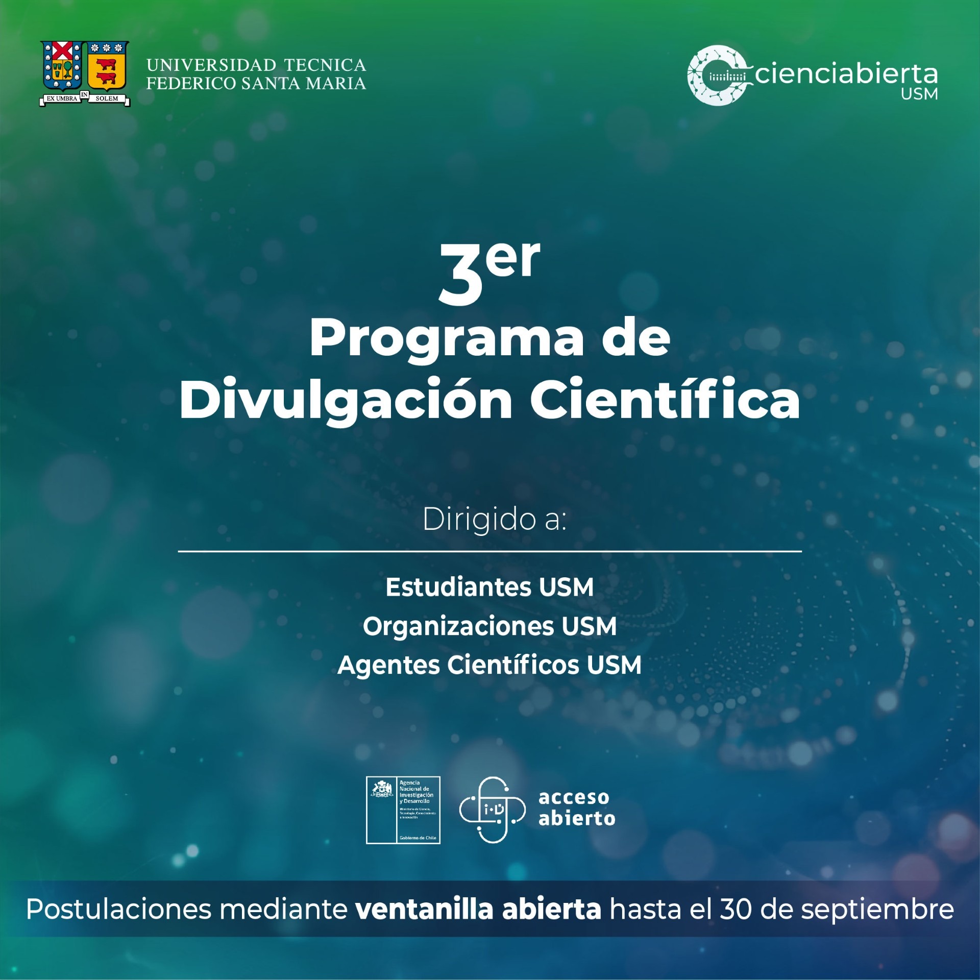 Convocatoria 3º Programa de Divulgación Científica, Ciencia Abierta USM