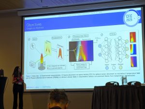 En la conferencia, Constanza presentó su trabajo de tesis “Sparse Sensor Placement and PINNs for Temperature and Velocity Field Reconstruction in Laminar Diffusion Flames”, desarrollado en el marco del proyecto Fondecyt en Iniciación nº 11241102, en conjunto a los académicos del Departamento de Industrias USM, Dr. Felipe Escudero B. y Dr. Rodrigo Demarco B. y al profesor de la Pontificia Universidad Católica de Chile, Dr. Benjamín Herrmann, y que permite complementar el diagnóstico experimental y numérico de las propiedades del hollín con técnicas de Machine Learning informado por Física, lo cual proporciona información relevante para el estudio de la combustión y aporta en la búsqueda de soluciones que reduzcan la producción de contaminantes.