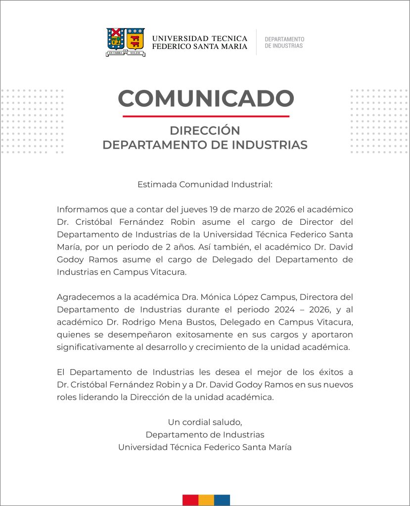 Bienvenidas Profesoras y Profesores Departamento de Industrias, 1º trimestre y semestre 2026