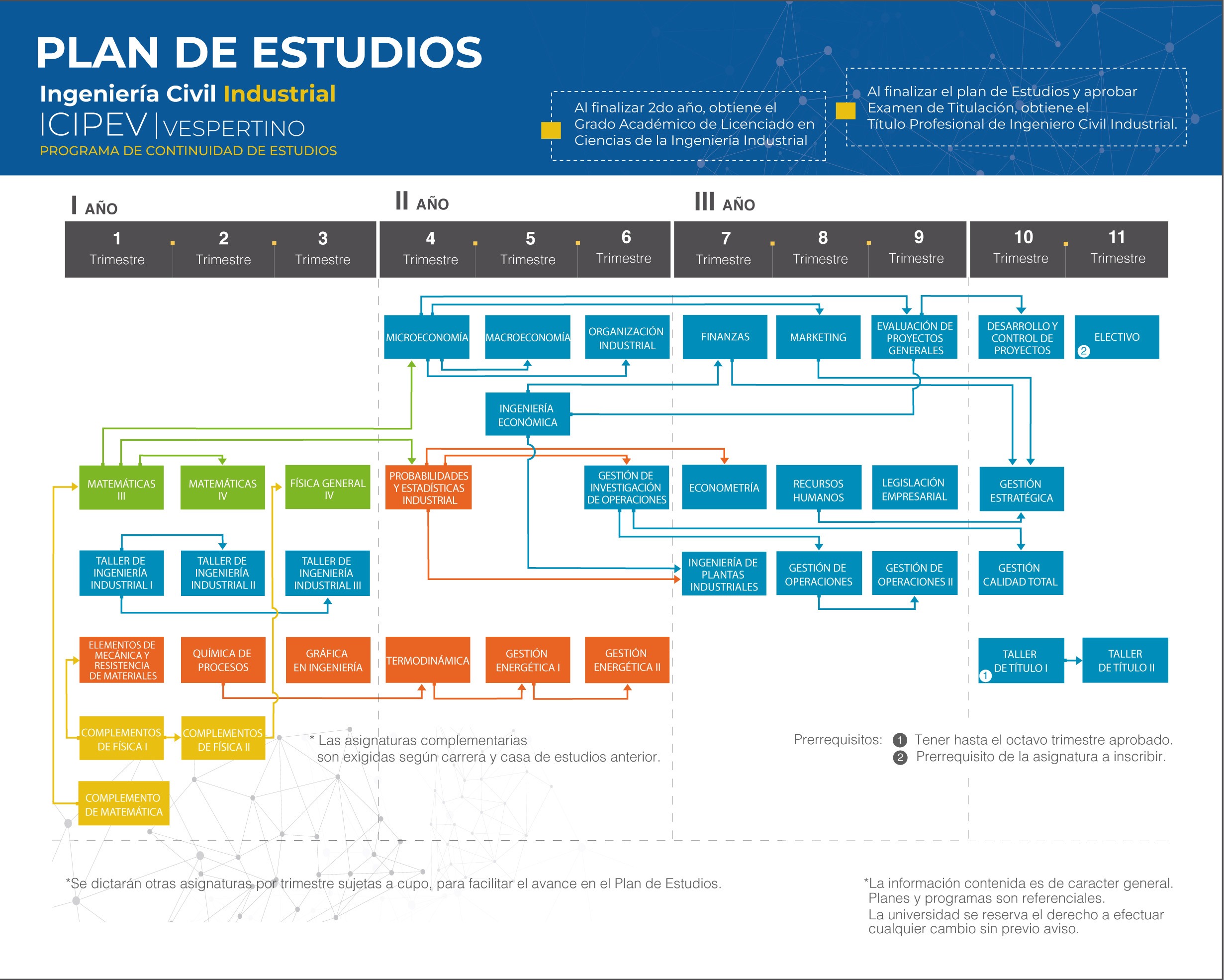 - El plan de estudios 6706, de jornada vespertina, con una duración de 11 trimestres. Este plan se dicta simultáneamente en Campus Casa Central y Campus Vitacura.