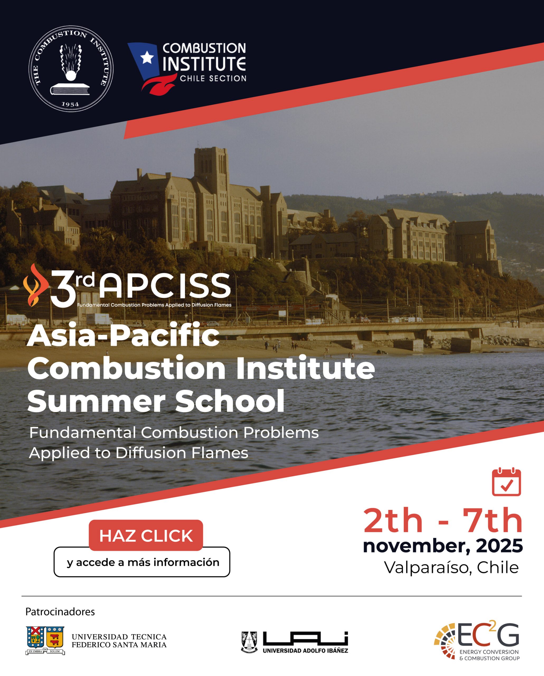 La tercera edición del Asia-Pacific Combustion Institute Summer School (APCISS3), organizada por la Universidad Técnica Federico Santa María en colaboración con la Universidad Adolfo Ibáñez y que se llevará a cabo del 02 al 07 de noviembre de 2025 en las dependencias del Campus Casa Central Valparaíso de la USM, está dirigida a estudiantes de postgrado, investigadores(as) e ingenieros(as) que deseen fortalecer sus conocimientos científicos relacionados a los desafíos fundamentales de la combustión, con énfasis en las llamas de difusión, clave en aplicaciones reales de energía, transporte e industria.