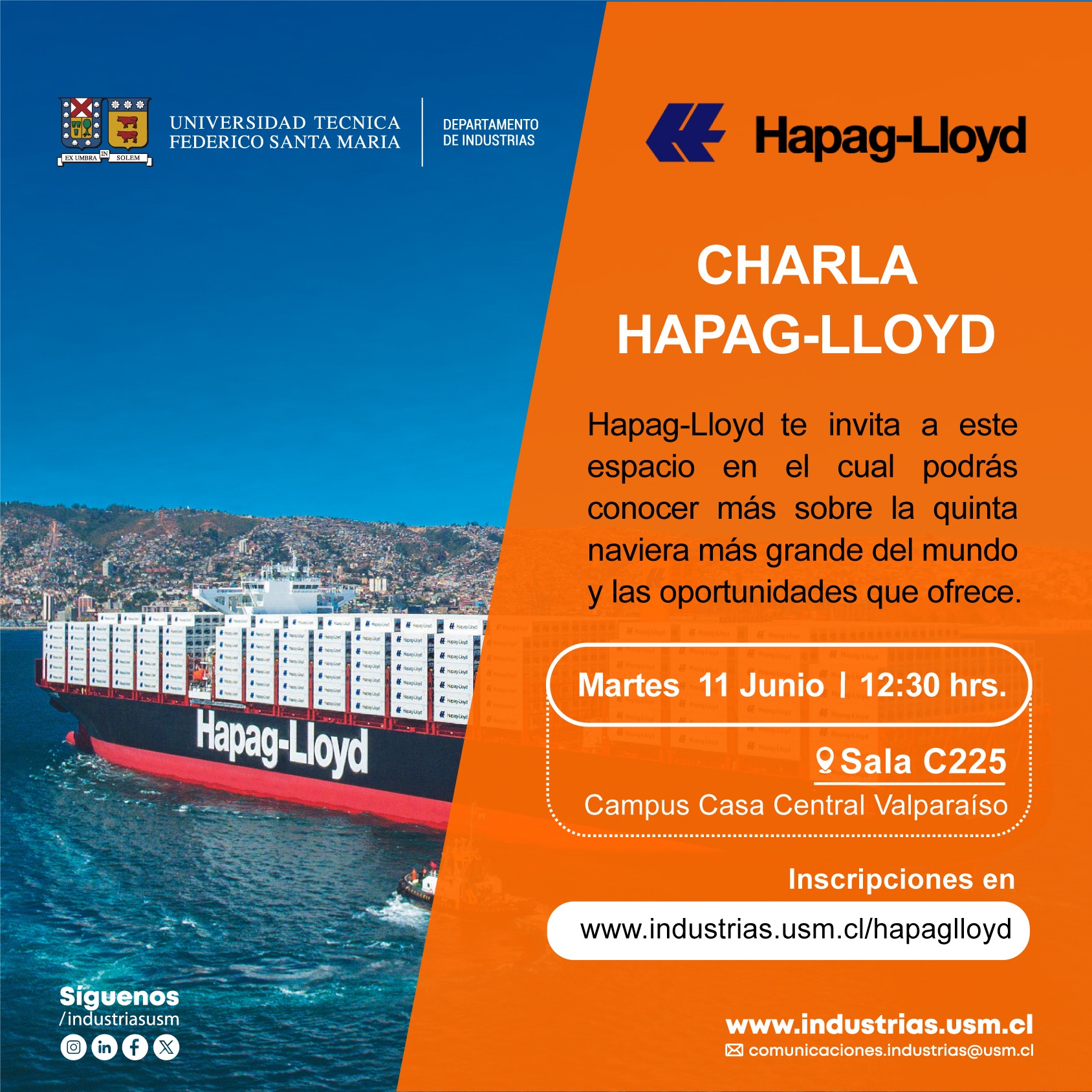 Te invitamos a participar de la charla que realizará Hapag Lloyd A.G., importante naviera internacional con operaciones alrededor de todo el mundo, en el Campus Casa Central Valparaíso de la Universidad Técnica Federico Santa María.