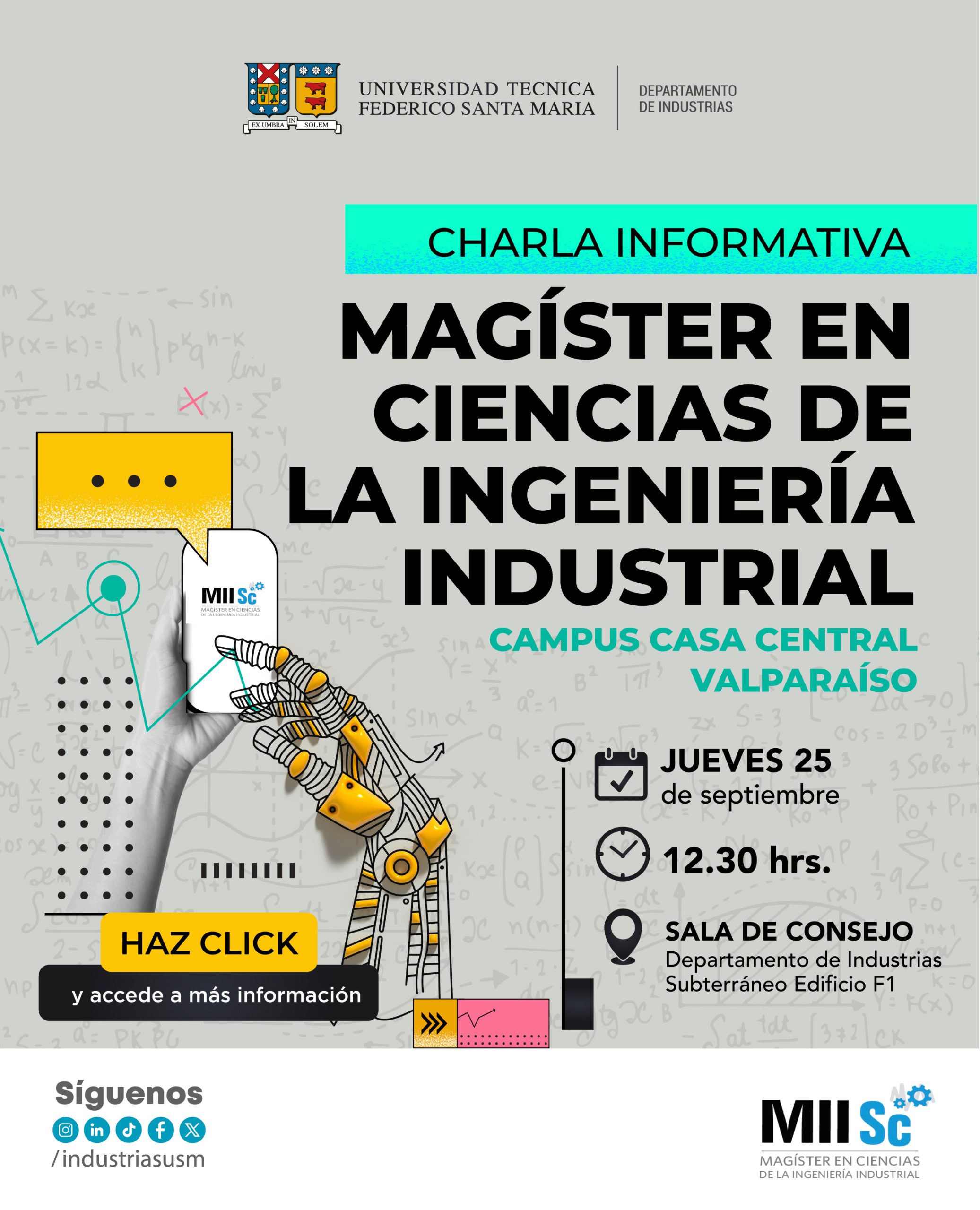 ¡Te invitamos a participar de las charlas informativas y conocer el MIISc, las becas disponibles y las posibilidades de articulación con la carrera Ingeniería Civil Industrial USM!