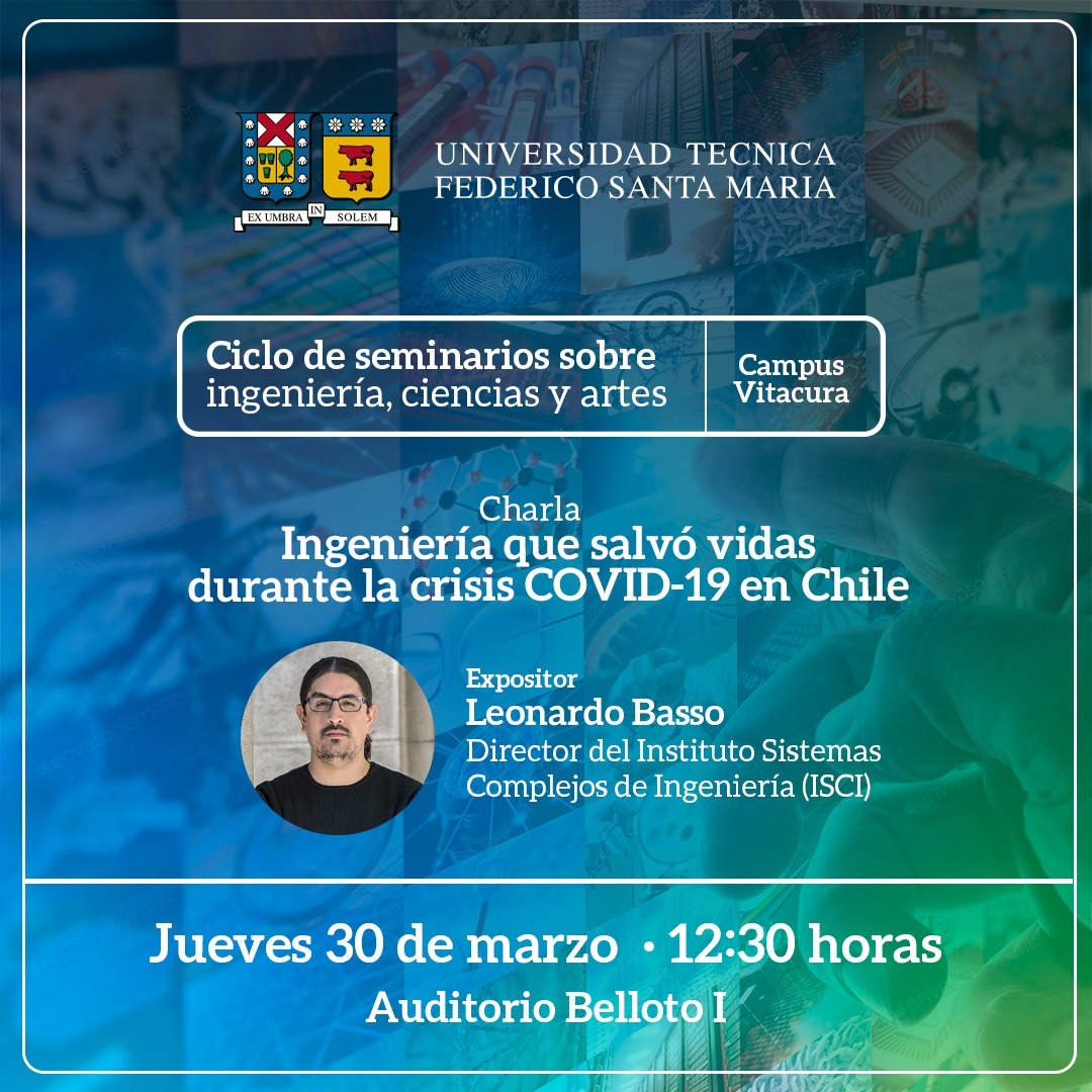La Dirección General de Campus Santiago Vitacura te invita a participar de la Charla «Ingeniería que salvó vidas durante la crisis COVID-19 en Chile», dictada por Leonardo Basso, Director del Instituto Sistemas Complejos de Ingeniería (ISCI) y líder del equipo que recibió el prestigioso premio internacional Franz Edelman Award 2022.