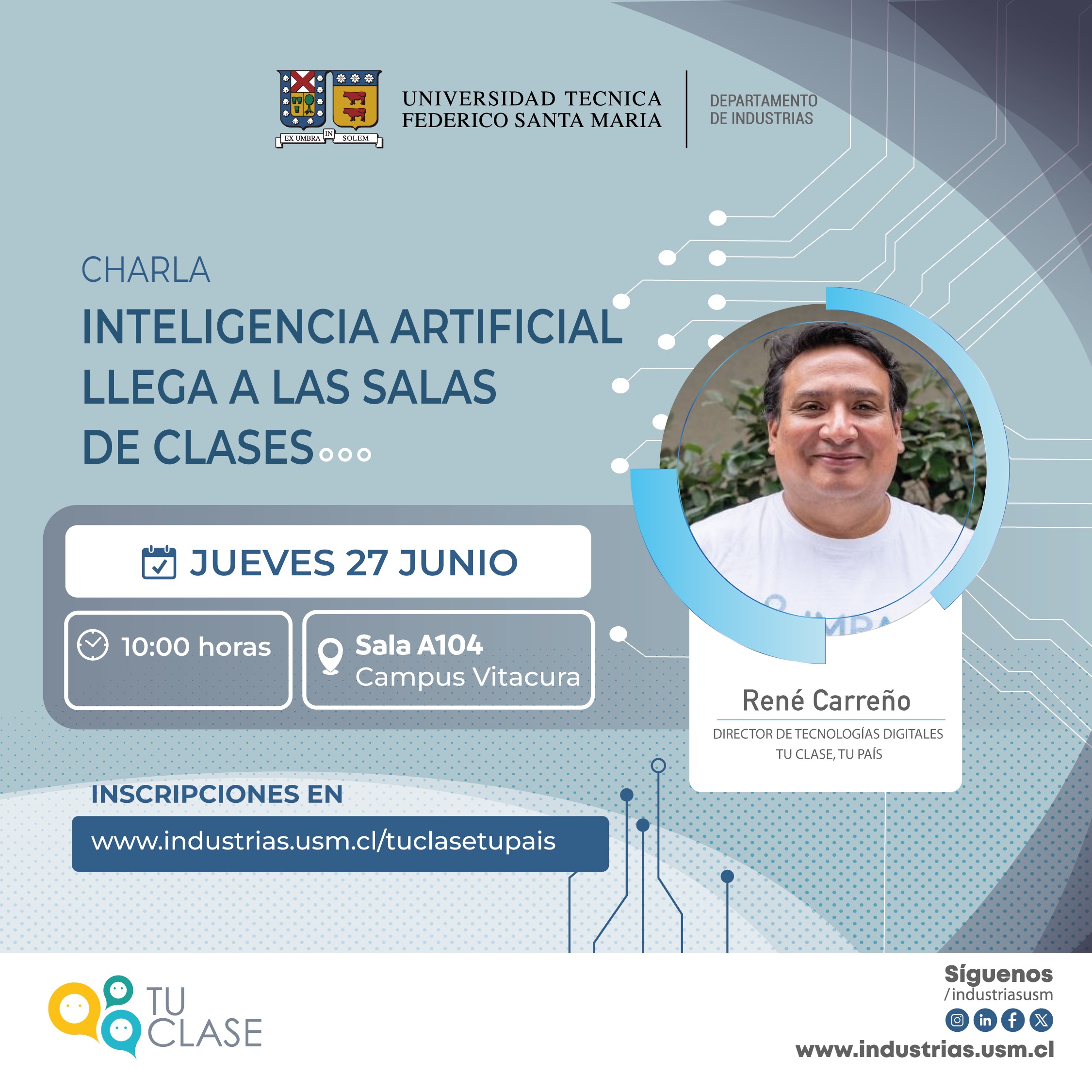 • ¿Dónde? Sala A104, Campus Vitacura USM.