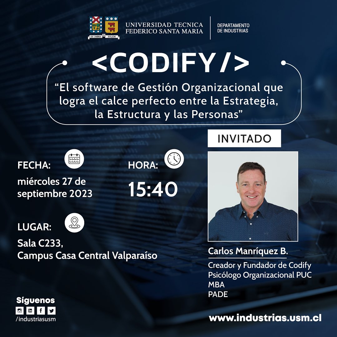 Invitado: Carlos Manríquez B. Creador y Fundador de Codify, Psicólogo Organizacional PUC MBA, PADE.