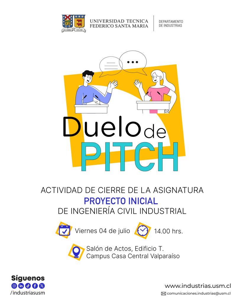Te invitamos a presenciar el Duelo de Pitch, actividad de cierre de la asignatura Proyecto Inicial (IWG-400) de los paralelos 3 y 7 de Campus Casa Central Valparaíso.
