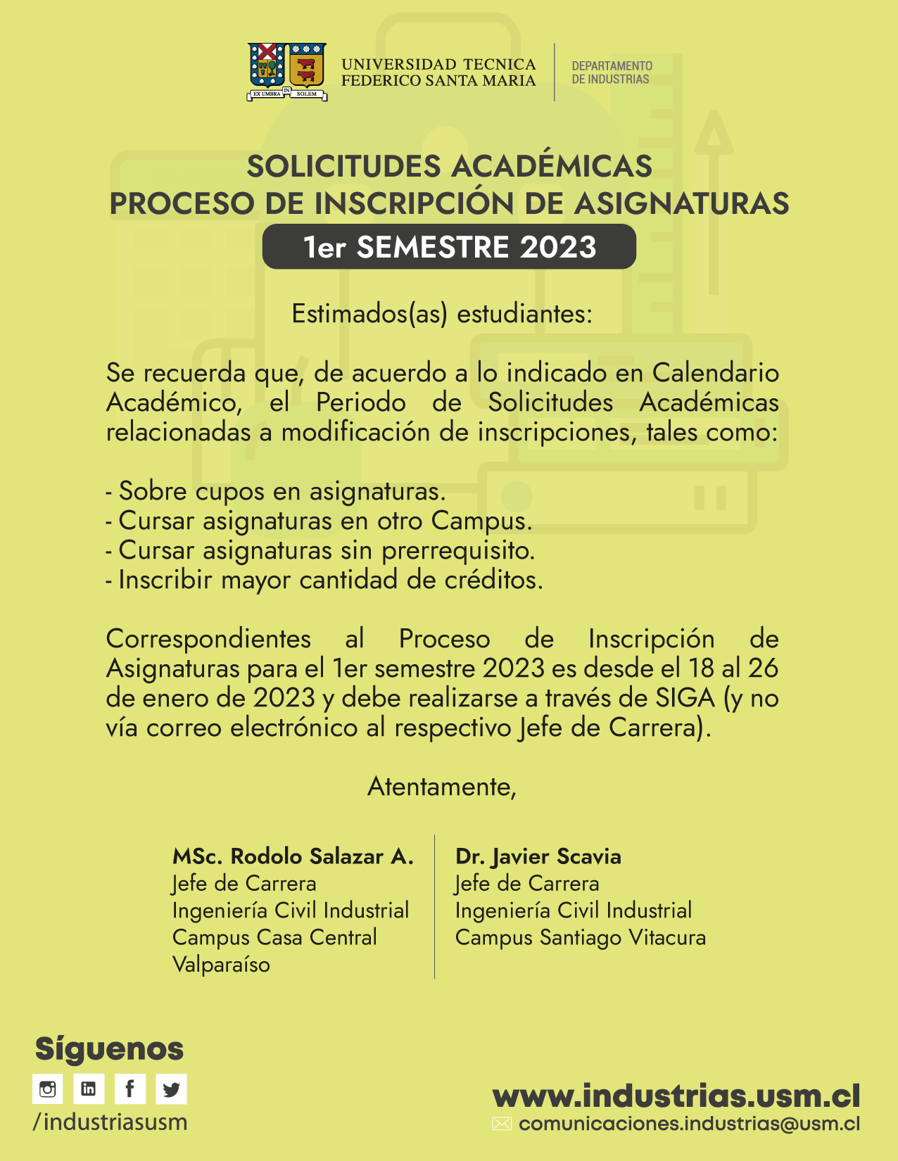 Periodo de Solicitudes de Modificación de Inscripción de Asignaturas 2023-S1