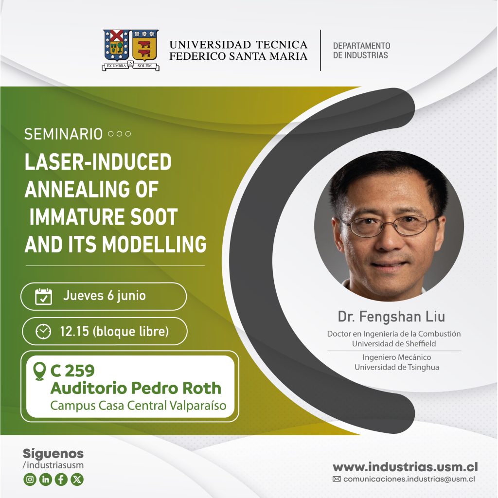 El Energy Conversion and Combustion Group (EC2G) del Departamento de Industrias te invita a participar del Seminario «Laser-Induced Annealing of Inmature Soot and ITS Modelling» a cargo del Dr. Fengshan Liu, Senior Research Officer del National Research Council Ottawa, Canadá.