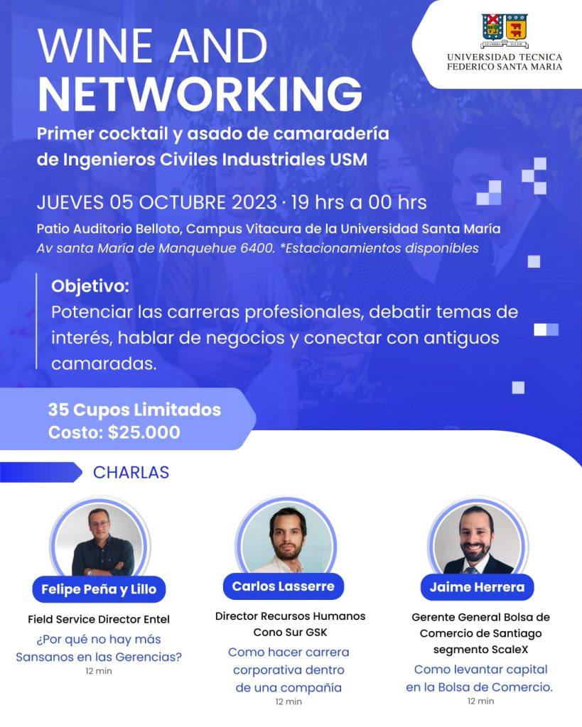 Inscripciones en: www.industrias.usm.cl/wineandnetworking